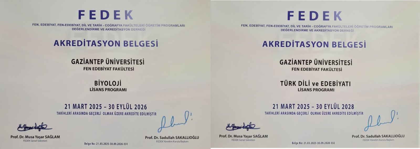 • Kurumsal Akreditasyon Programı Kapsamında Biyoloji ve Türk Dili Edebiyatı Bölümlerimizin Akreditasyon Belgelerinin Süresi Uzatılarak Onaylanmıştır.